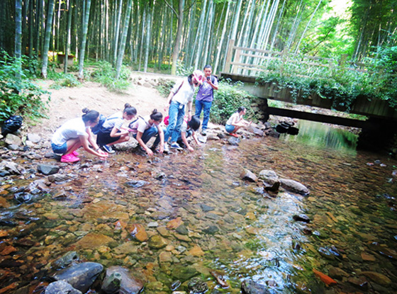 漫步在蔥蔥郁郁的竹林里,感受著大自然給我們的饋贈,在經過一條小溪流的時候大家紛紛停下腳步在溪邊嬉戲,好像都回到了童年。